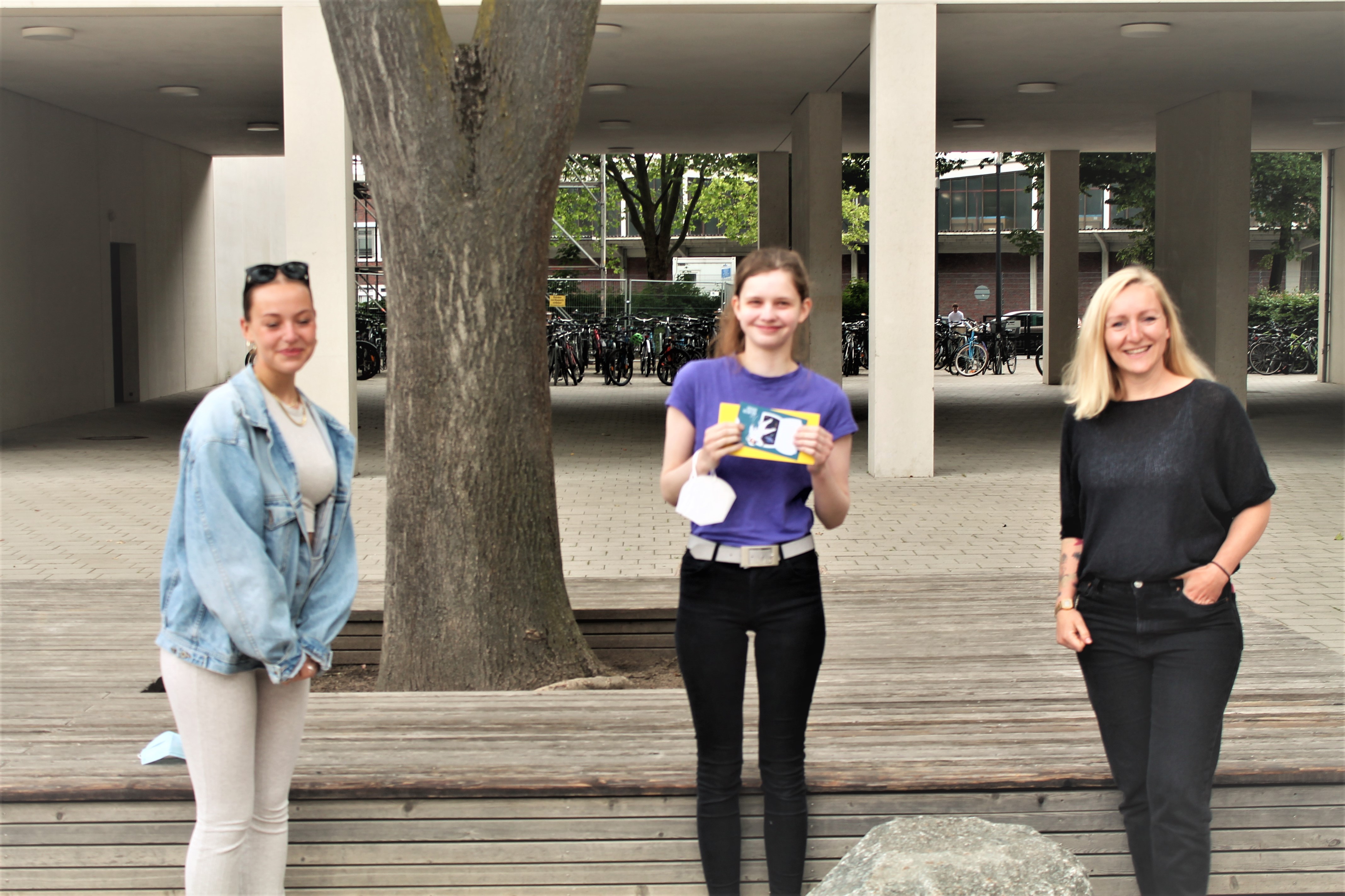 … hier zusammen mit Amelie Weiß, der Preisträgerin von 2019, die den diesjährigen Preis überreicht hat, und Frau Kreipe.