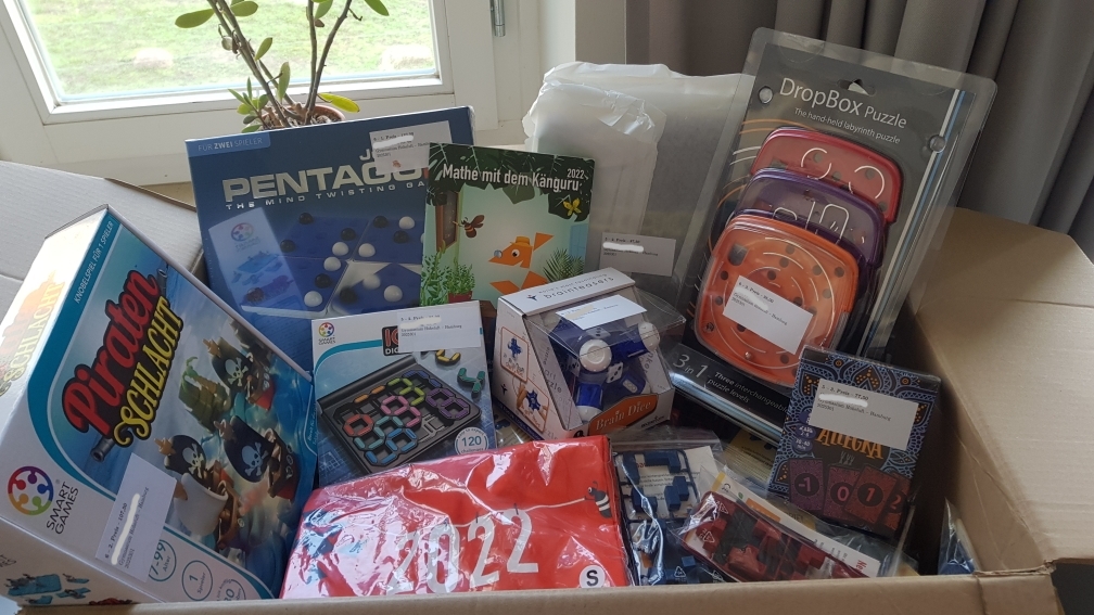Ich freue mich, dass 91 Schülerinnen und Schülern aus fast allen Jahrgängen sich den Knobelaufgaben gestellt haben – sogar aus dem Abiturjahrgang waren Judith, Sten und Milovan nun zum letzten Mal dabei. Alle Teilnehmerinnen und Teilnehmer können sich in diesem Schuljahr über ein Baumeister-Spiel und natürlich ihre Urkunde freuen.