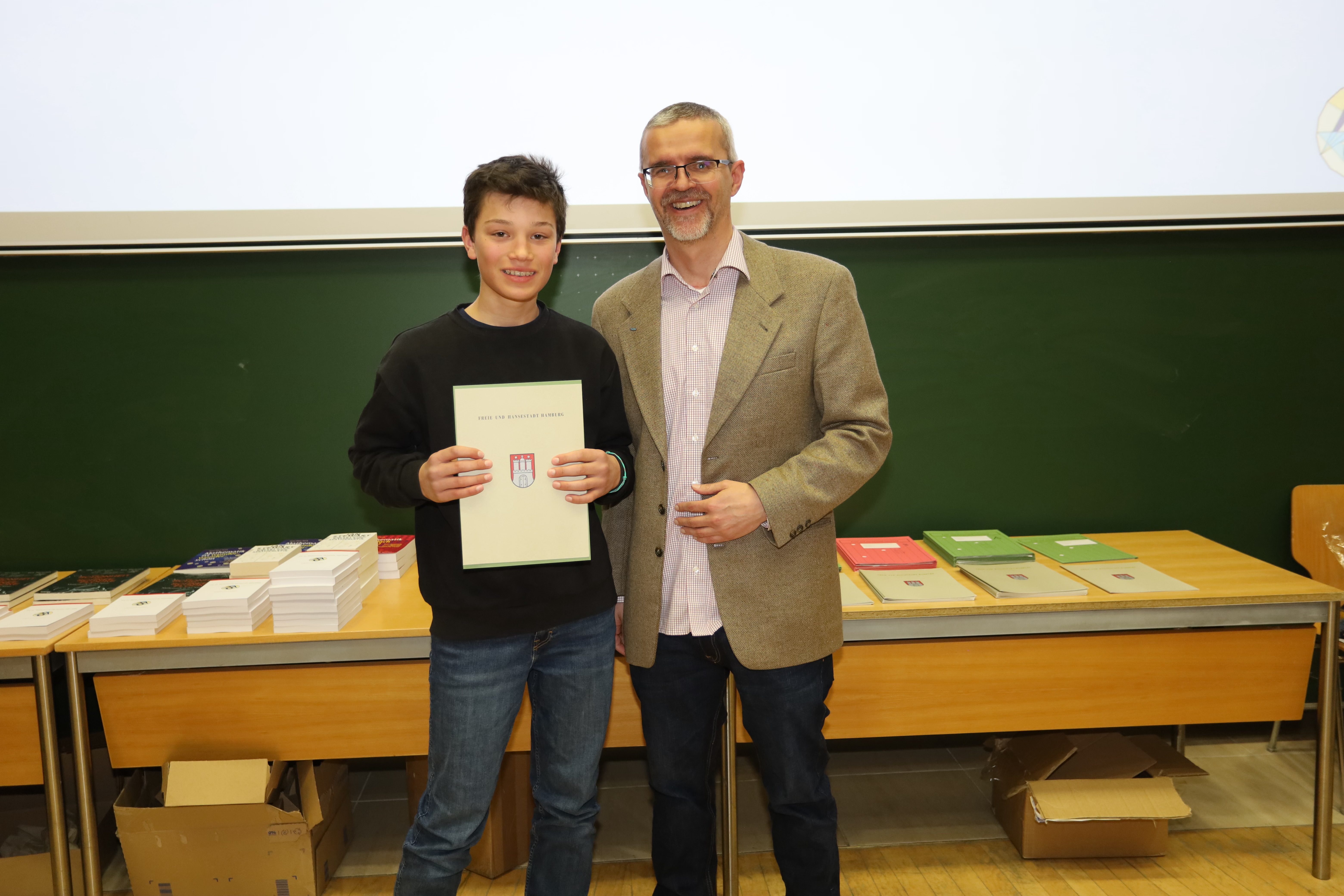 Da die Konkurrent:innen in Hamburg in diesem Jahr sehr stark waren, konnten nicht alle Schüler:innen, die tolle Ergebnisse erzielt haben, auch in die 3. und damit letzte Runde einziehen. Trotz der starken Konkurrenz gelang Ben (6a), Milena (7d), Jussi Georg (7b) und Timo (9b) der Sprung in die letzte Runde. Wir gratulieren dazu herzlich und freuen uns besonders mit Ben, der als Landessieger in seinem Jahrgang einen 1. Preis erzielt hat!
