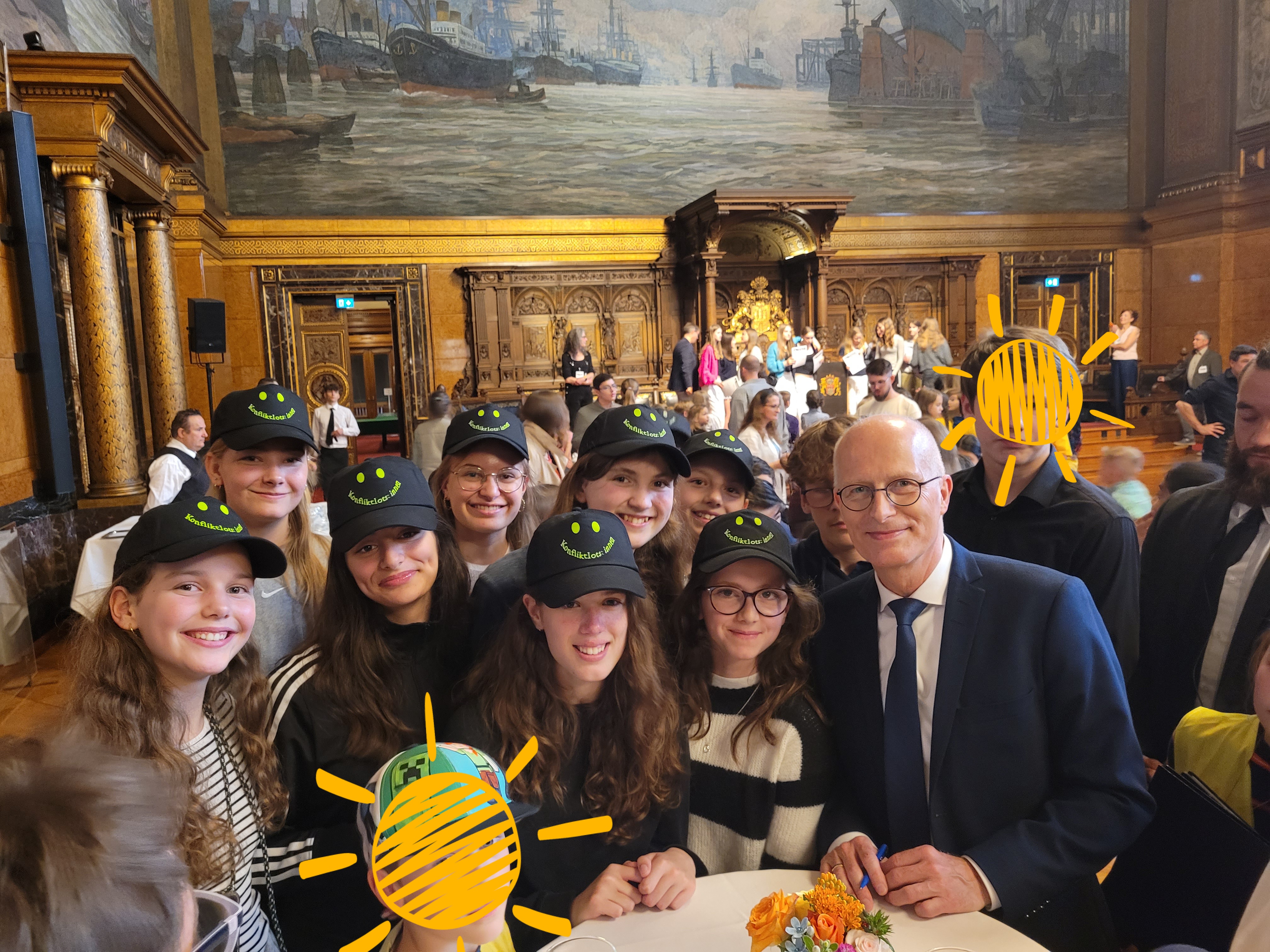 Insgesamt fanden sich ca. 150 Streitschlichter:innen zusammen und wurden durch unseren Bürgermeister, Peter Tschentscher, empfangen. In feierlicher Atmosphäre dankte er ihnen für ihr soziales Engagement. Jan Logemann, der unter den Schüler:innen als Magier, Weltmeister der Kartenkunst und Meister der Illusionen bekannt ist, rundete den Vormittag ab.