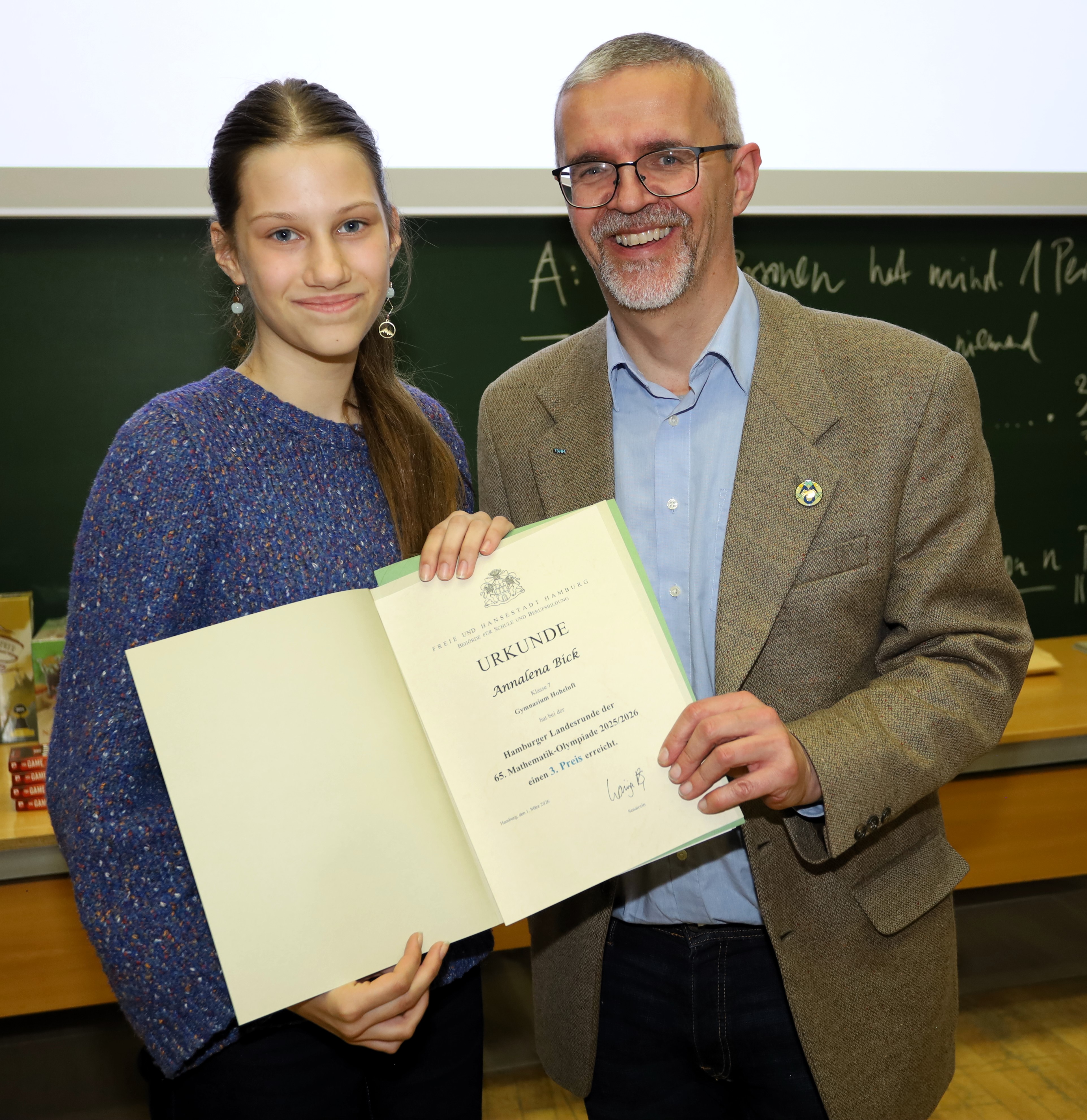 Während über 80 Schüler:innen des GHT am Donnerstag nach den Frühjahrsferien an den spannenden Aufgaben des Känguru-Wettbewerbs knobelten und nun alle gespannt auf die Ergebnisse warten, freuen wir und schon sehr mir Annalena (7c) über ihren ausgezeichneten 3. Preis bei der Landesrunde der Mathematik-Olympiade!