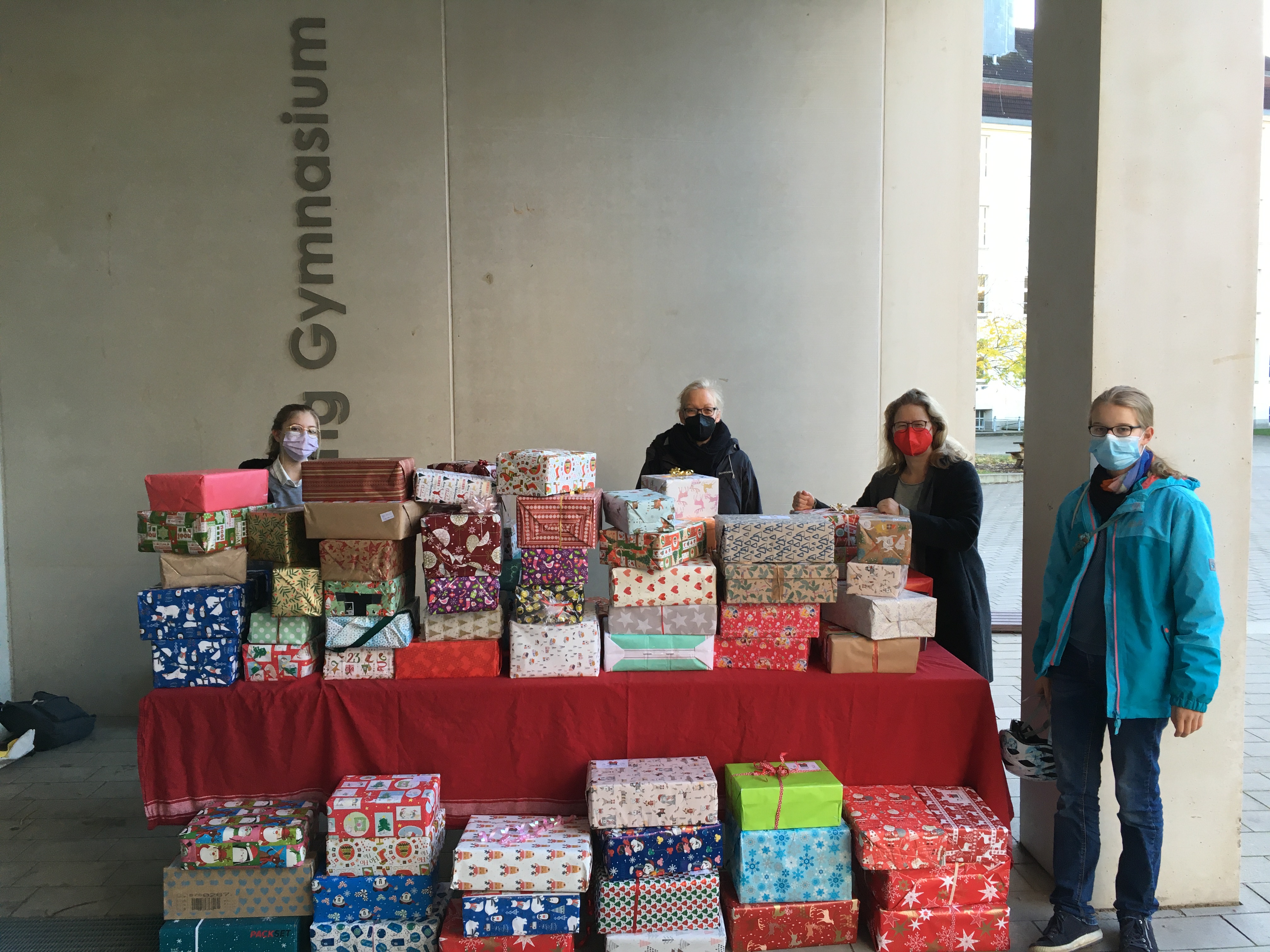 Der Weihnachtspäckchenkonvoi erwartet insgesamt 166.000 Päckchen aus ganz Deutschland, zu denen die Schüler*innen und Eltern des GHT mit 142 liebevoll gepackten Geschenken beigetragen haben.
