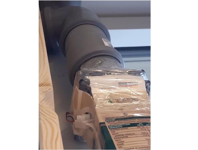 Aus Brettern, Rohren, Dichtungs-und Isoliermaterial, zwei Lüftungsventilatoren ausgedienter Computer und Kartonage haben die Zehntklässler eine Zu- und Abluftkonstruktion gebaut.