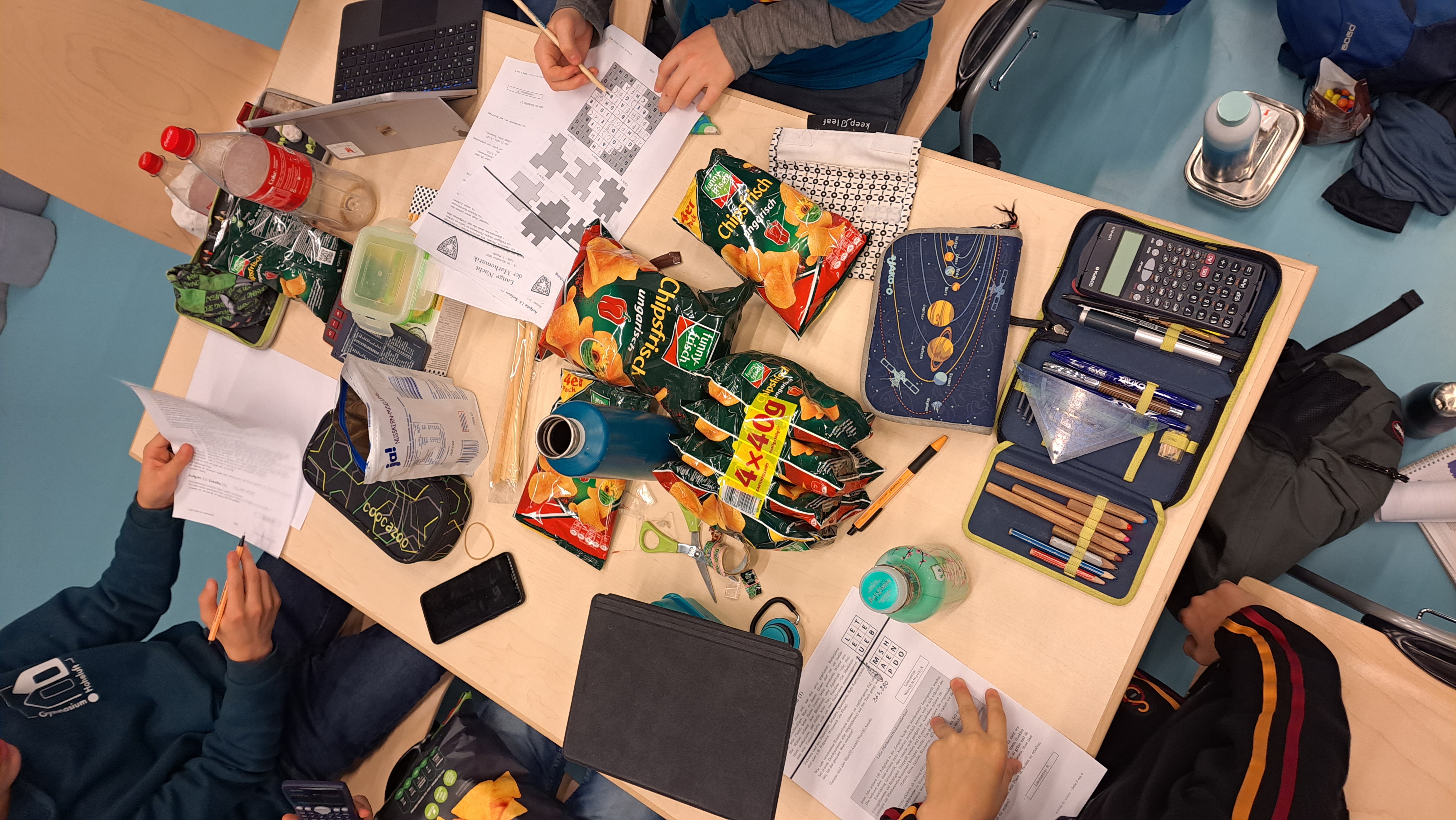 Lange schafften es die Schüler:innen nicht in die zweite Runde und fast hätte Rat- und Lustlosigkeit Oberwasser gewonnen, doch dann, gegen 2:30 Uhr jubelten die Schüler:innen der 6. Klasse laut auf: “Wir sind eine Runde weiter!”. Es kam keine Minute zu spät und gab neue Energie für neue Mathe-Aktivitäten, Selbst die an den Schlaf verloren geglaubten Mitstreiter:innen krabbelten wieder aus ihren Schlafsäcken und machten weiter mit.