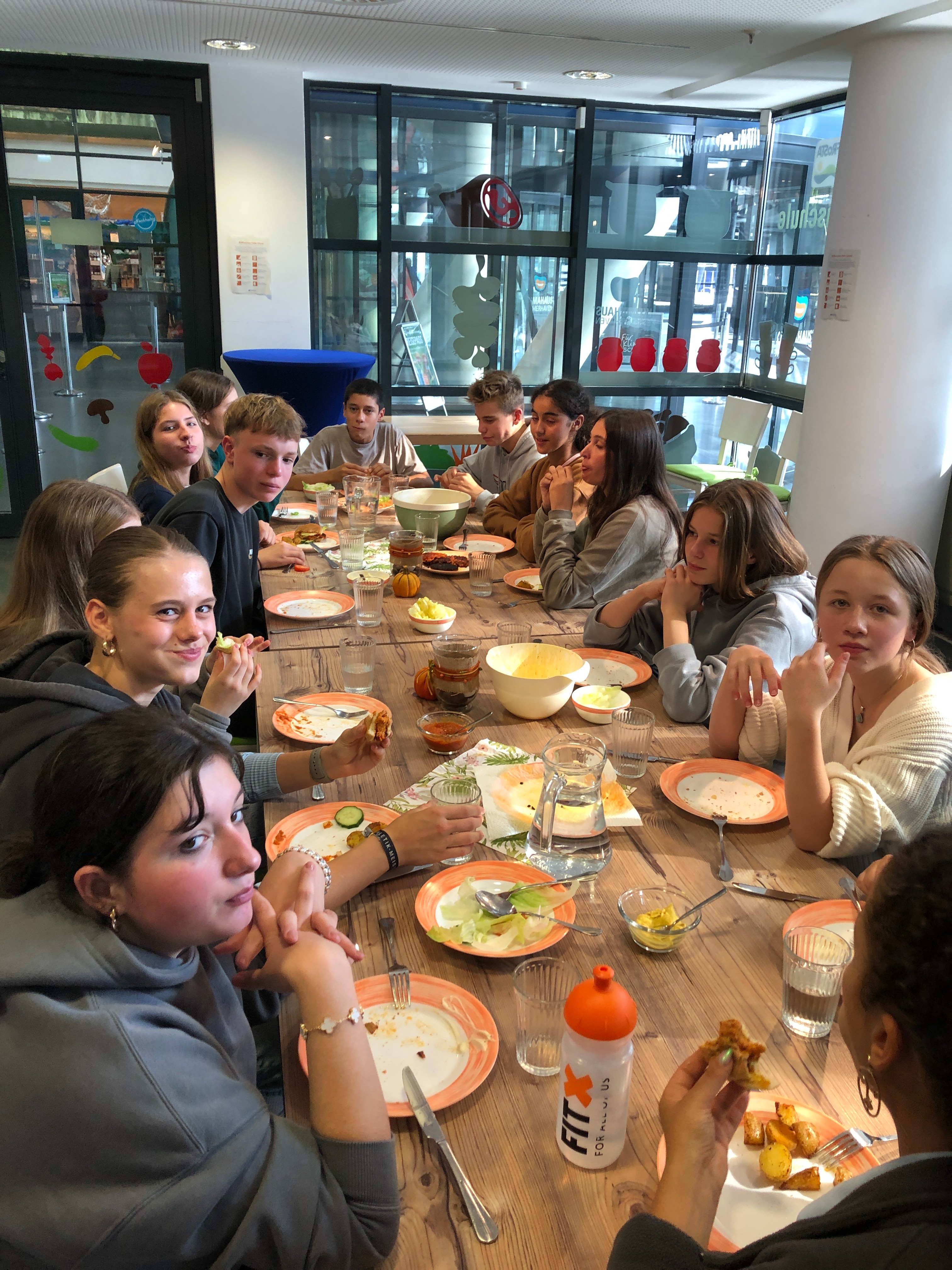 Für die Schüler:innen wurde ein buntes Programm in der Schule und am Wochenende in den Familien gestaltet, bei dem sie Hamburg näher erkundeten. Ein Highlight war der Ausflug nach Bremerhaven in das Klimahaus. Dabei hatten die Schüler:innen nicht nur die Möglichkeit, die „Reise entlang des 8. Längengrads“ zu besuchen, sondern konnten zusätzlich an einem nachhaltigen Kochworkshop oder an Spielen zu nachhaltigen Themen teilnehmen. Am Ende haben alle zusammen leckere vegetarische Burger gegessen. Eine Schülerin fand: „Der Kochkurs war das aufregendste Erlebnis“.
