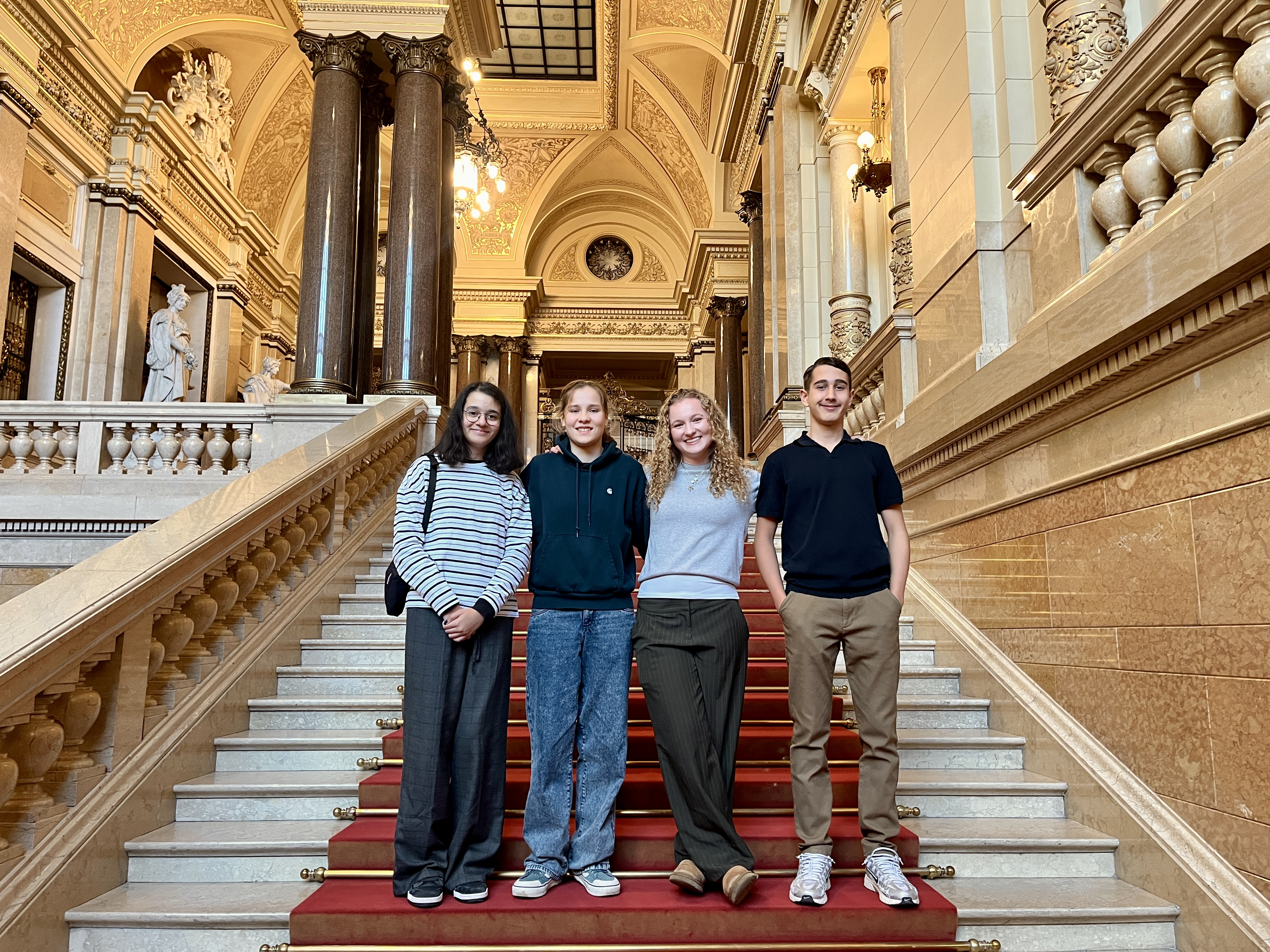 Am 3. November fuhren Devran, Zoe und Hanna (aus dem Schulsprecherteam) und ich, Ginevra, begleitet von Frau Mönnich, zum Senatsempfang für medieninteressierte Jugendliche zum Hamburger Rathaus.