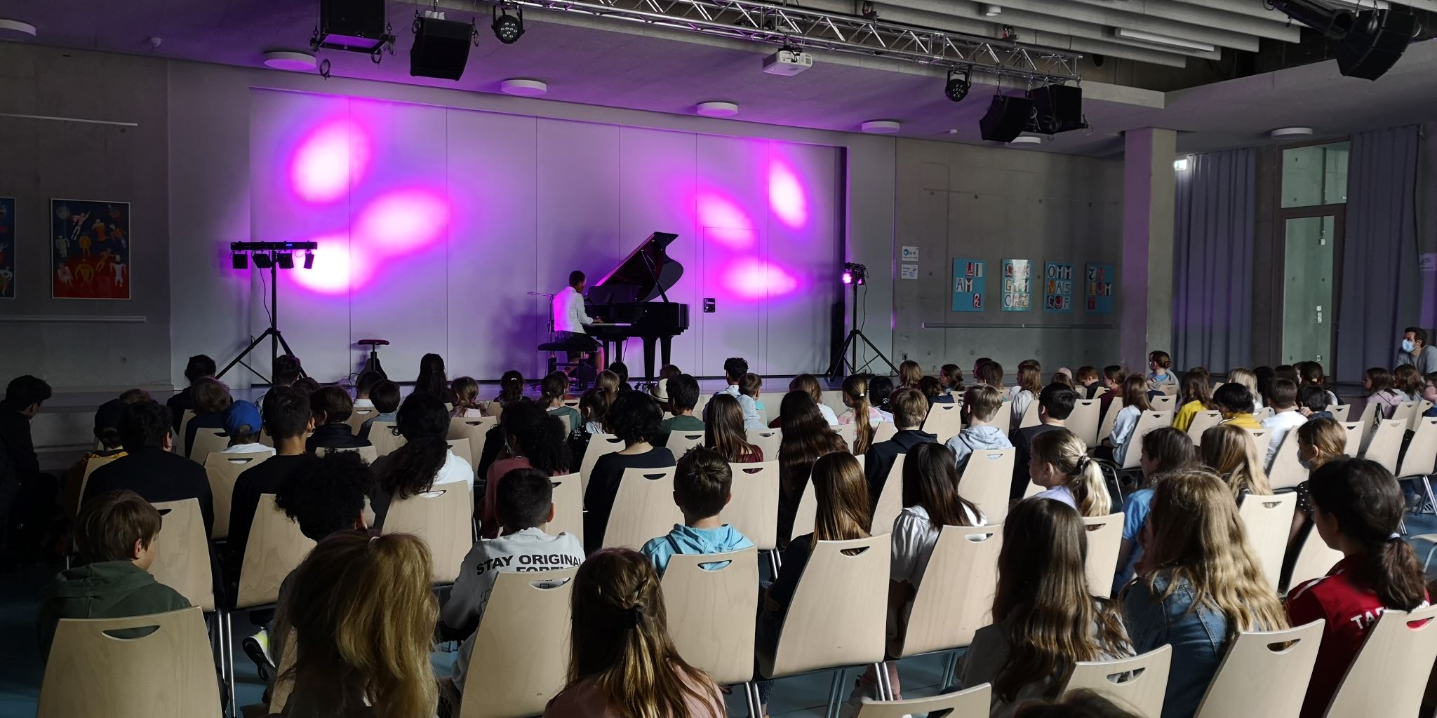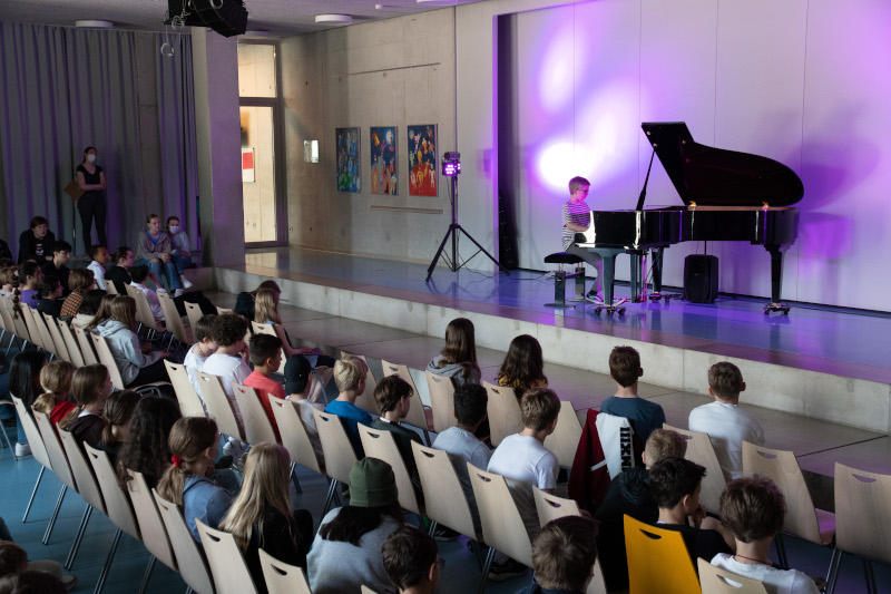 30 Pianist:innen aus allen Jahrgängen spielten für alle Jahrgänge.