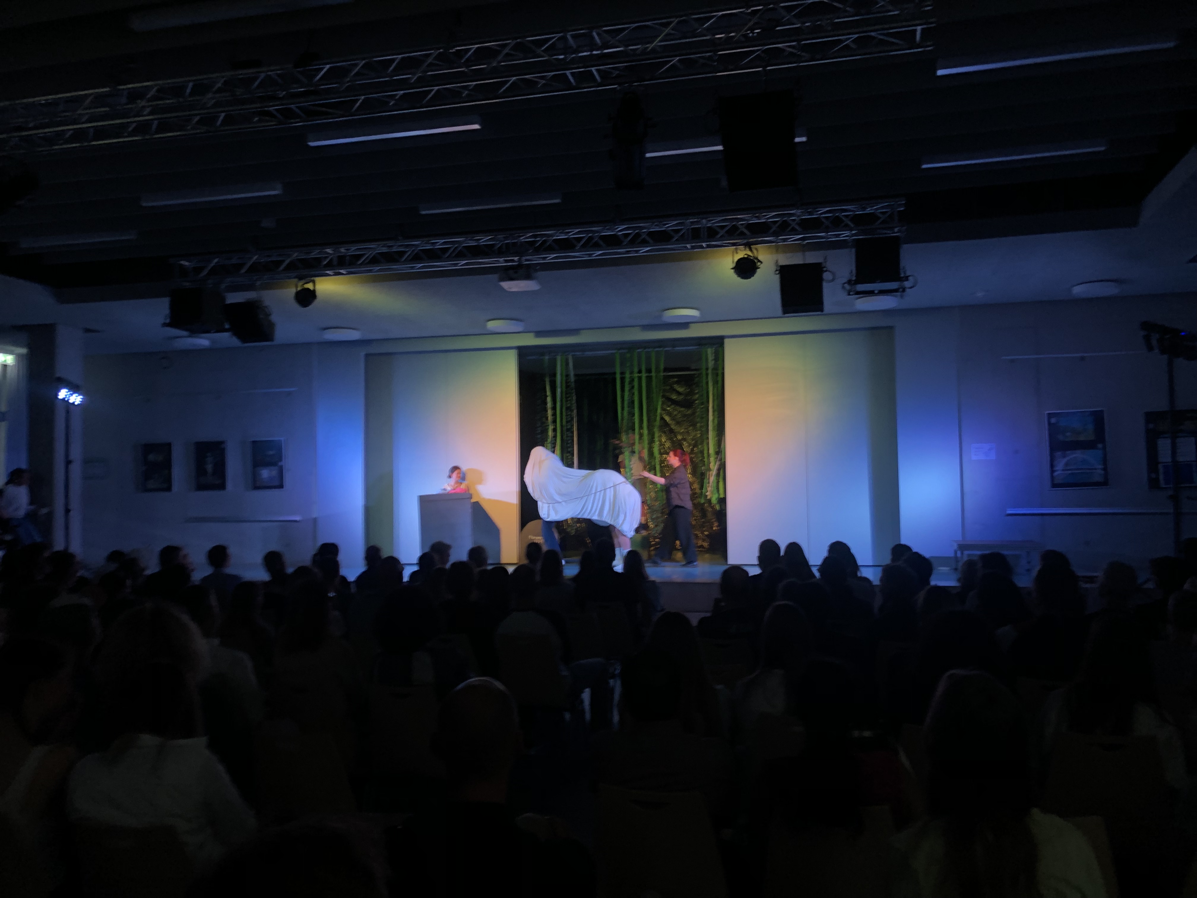 Der 10. Jahrgang brachte am 5. Juni 2023 eine Quizshow auf die Bühne: Inszeniert wurden verschiedene Märchen sowie Werke von Shakespeare in Kurzform bzw. in Ausschnitten. Während der Großteil des Publikums sich entspannt zurücklehnen und die Vorstellung genießen konnte, mussten die sechs Kandidat:innen aus dem Publikum besonders aufmerksam sein. Denn sie mussten jeweils im Anschluss an die inszenierten Stücke Fragen beantworten, um punkten zu können!