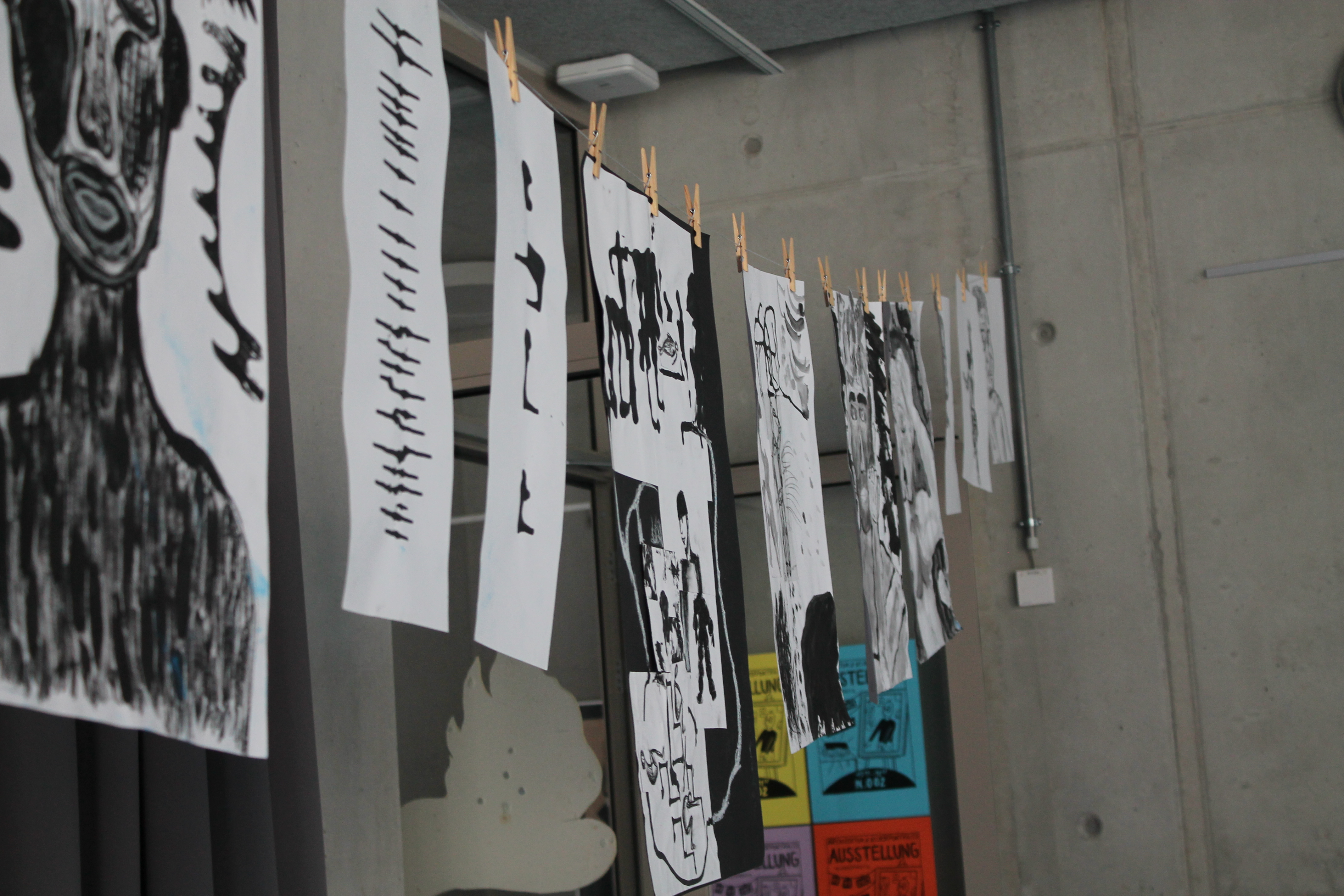 Um eine möglichst ansprechende und blickführende Ausstellung zu erstellen, arbeitete das Kurationsteam am Vortag Hand in Hand mit dem Aufbauteam. Dazu wurden die Portraits thematisch sortiert und rundum an den Wänden und an Staffeleien ausgestellt. Für die Modelle wurden Pappwürfel arrangiert und in einer Kreisform angeordnet, um sie in einer harmonischen Weise, wie eine Stadt, anzuordnen. Die Vernissage begann schließlich um 17 Uhr mit einer Rede und einem Buffet für die Gäste. Allgemein herrschte unter den vielen Besucher:innen eine sehr interessierte Stimmung. Die Ausstellung wurde von Besucher:innen als „beeindruckend” und „hochwertig” beschrieben. Für uns war die Ausstellung ein voller Erfolg!