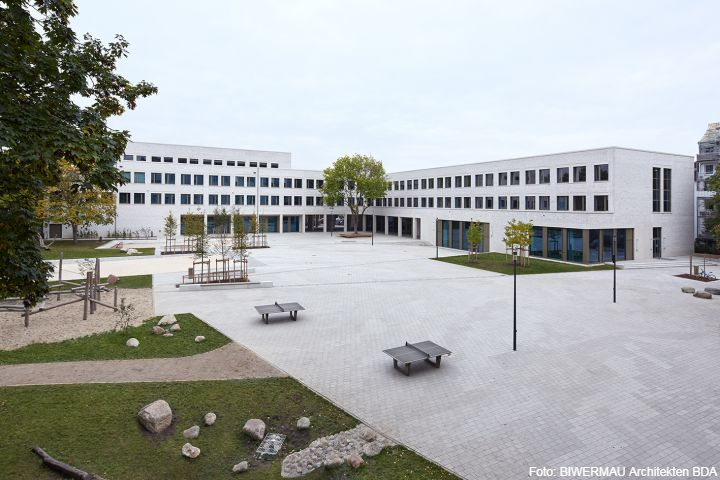 Mit dem Altbau mit großzügigen, hellen Lernräumen und dem Neubau, der Raum für modern ausgestattete Fachräume und Jahrgangscluster mit transparenten Differenzierungsflächen bietet, setzen wir dies um. Die Konzeption und Ausstattung in beiden Gebäuden unterstützt eigenverantwortliches Arbeiten und ermöglicht Arbeitsplätze individuell zu wählen.