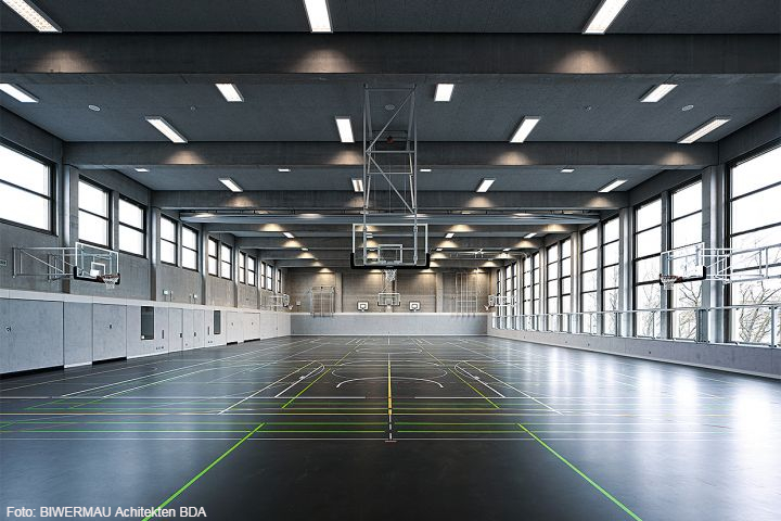 Besonders beliebt sind die vier großen Sporthallen, die in ihrem quadratischen Format außergewöhnlich viel Bewegungsmöglichkeiten bieten.