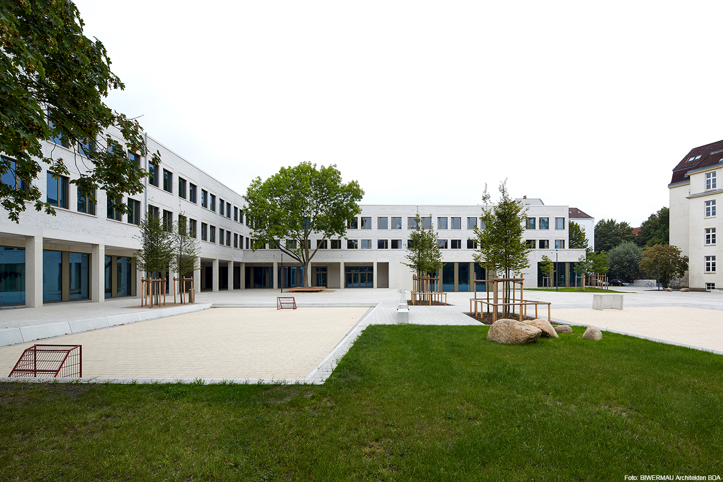 Aus dem Ganztagsbetrieb ergibt sich gerade für die jüngeren Schülerinnen und Schüler der Drang nach Bewegung und Spiel. Das großzügige Außengelände bietet hierzu reichlich Gelegenheit. Auf zwei Ballspielfeldern wird bevorzugt Fußball gespielt, Kletter- und Turngeräte laden zur Bewegung ein, ebenso wie ausleihbare Spielgeräte. Das „Deck“, unsere Aula im Neubau, steht in den Mittagspausen ebenfalls zur Verfügung, um dort ihre freie Zeit zu bringen.