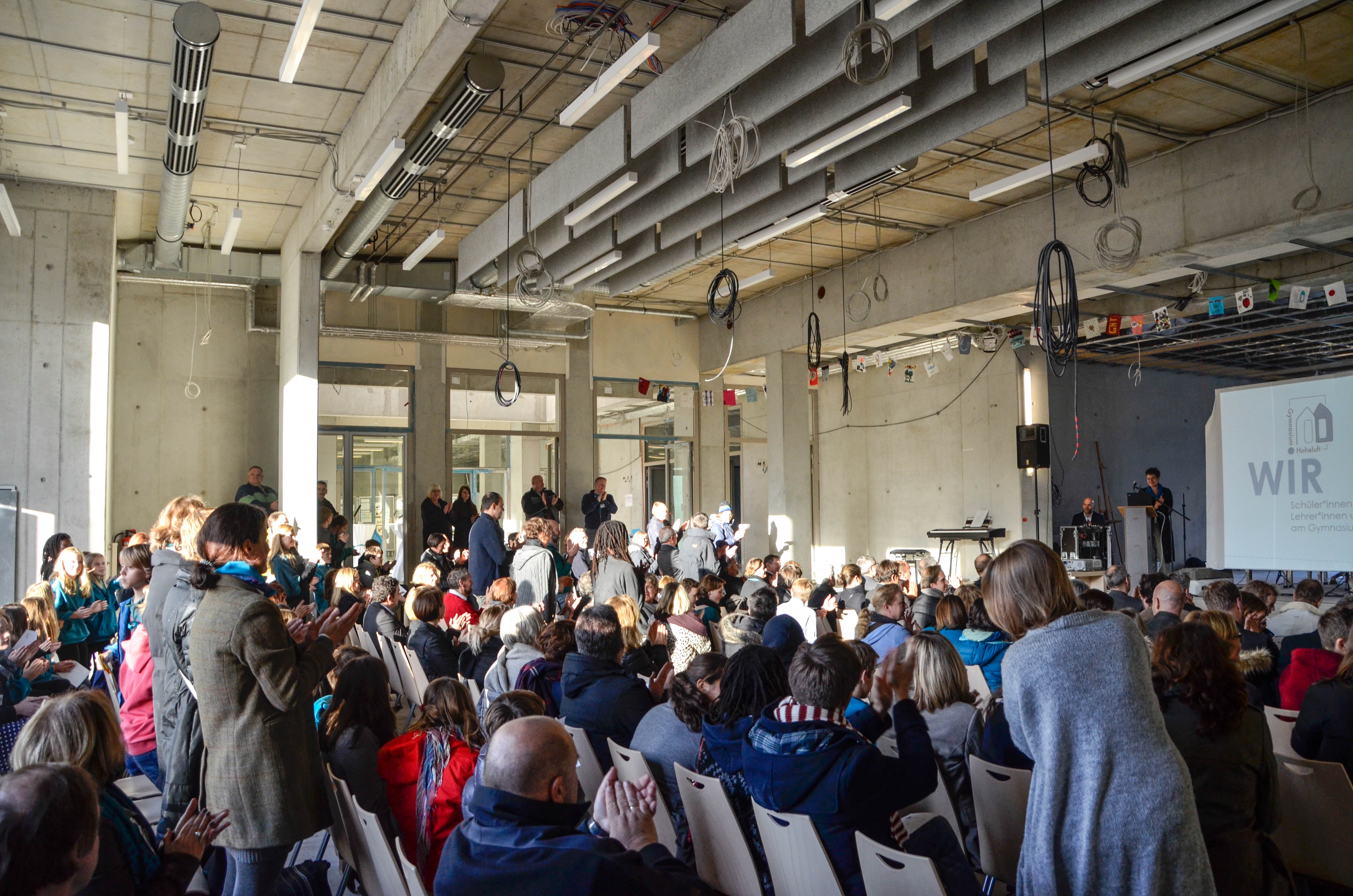 Liebe Schulgemeinschaft, manchmal ist es gut, Dank und Anerkennung direkt und unmittelbar auszusprechen. Manchmal braucht es aber auch eine Öffentlichkeit, um Dingen das Gewicht zu geben, das ihnen zukommt. Darum, liebe Eltern, bitte ich Sie heute hier darum, dieses Publikum zu sein, denn das, was an unserer Schule in der letzten Woche geleistet wurde, war und ist aber so etwas von außerordentlich. Aus tiefster Schulleiterinnenseele spreche ich Ihnen, liebe Kolleg*innen, meine Anerkennung und meinen Dank aus, für das, wie Sie diesen Umzug möglich gemacht haben. Hier ganz besonders seien die Fachkolleginnen der Naturwissenschaften, Kunst und Musik zu nennen sowie Herr Lengler, für diese planerische Meisterleistung. Das war ein phänomenaler Einsatz. Und auch euch, liebe Schüler*innen und Schüler, gilt dies, denn ihr habt so zuverlässig, achtsam und engagiert mit angepackt, das war großartig! Ich kann nur sagen, solch eine Aktion brauche ich so schnell nicht wieder, aber wenn - dann bitte nur mit dieser Mannschaft.”
